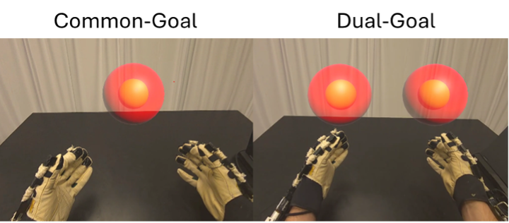 Even if chronic impairment of the upper extremity is unilateral, impairment of just one hand has been shown to negatively affect the performance of tasks associated with activities of daily living, as many of these tasks require bimanual coordination of both sensory and motor information. The objective of this proposal is to characterize how stroke may impact the performance of bimanual tasks involving common goal or dual goals across the hands. This project explores responses to imposed perturbations during task performance to elicit compensation by the contralateral hand in neurotypical individuals and individuals post-stroke, and also explores asymmetric sensory cues to evaluate for bias towards the sensory feedback applied to a particular hand. To simulate perturbations of motion and asymmetry in sensation, a custom hand exoskeleton will be used for haptic feedback in augmented reality. Collectively, information from both aims will allow for analysis of how alterations to sensory information and kinematic movements are managed between neurotypical and post-stroke individuals for bimanual task performance. This work has implications for upper extremity rehabilitation post-stroke by revealing potential deficits in bimanual coordination following stroke, which in turn may help to guide the development of new therapies emphasizing bimanual performance with customization based on hand dominance and the brain hemisphere affected by the stroke.