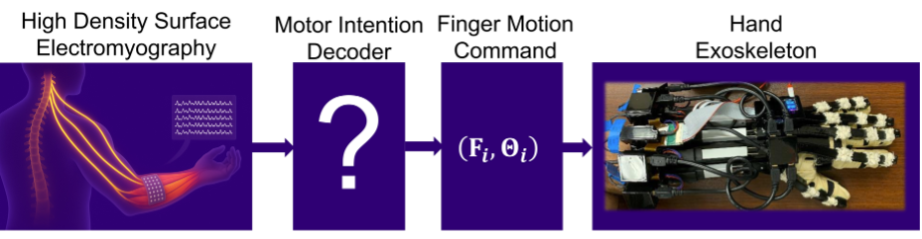 We develop reliable neural interfaces to support recovery of, and compensate for, impaired hand function in people who have lost motor control, especially after stroke. Using high-density surface electromyography (HD-sEMG) as a non-invasive window into spinal motor neuron output, we decompose surface recordings into individual motor unit activity patterns. We then build models that map these neural features to continuous outputs such as fingertip force or joint angles, using both classical function estimators and specialized machine learning architectures to decode motor intent with high accuracy. Finally, we embed these decoders in custom software and hand exoskeleton hardware to test intuitive, real-time control in both individuals post-stroke and neurotypical participants, aiming to create HD-sEMG-based interfaces that deliver robust, usable improvements in fine hand motor function.